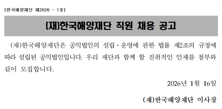 (재)한국해양재단 직원 채용 공고(~1.30.(금))