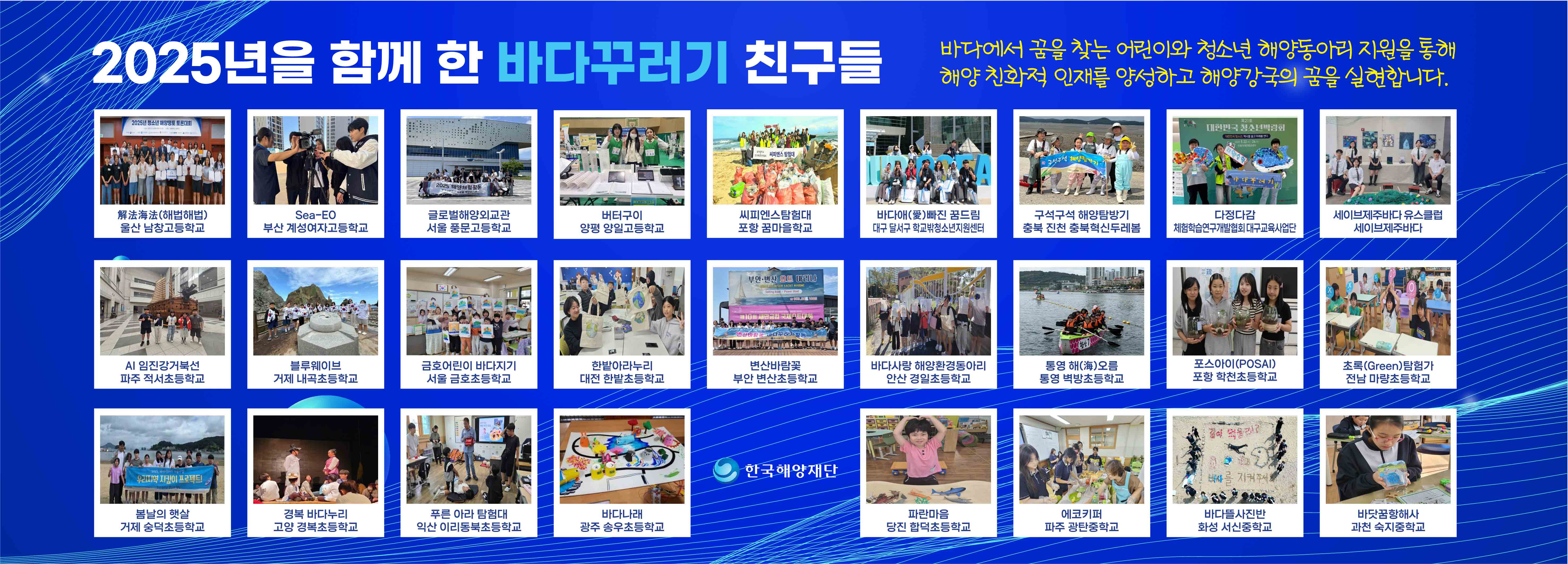 전국의 초·중·고등학교 및 청소년단체 등의 해양 동아리 활동을 지원하여 해양 친화적 인재를 양성하고 해양강국의 꿈을 실현하고자 합니다.