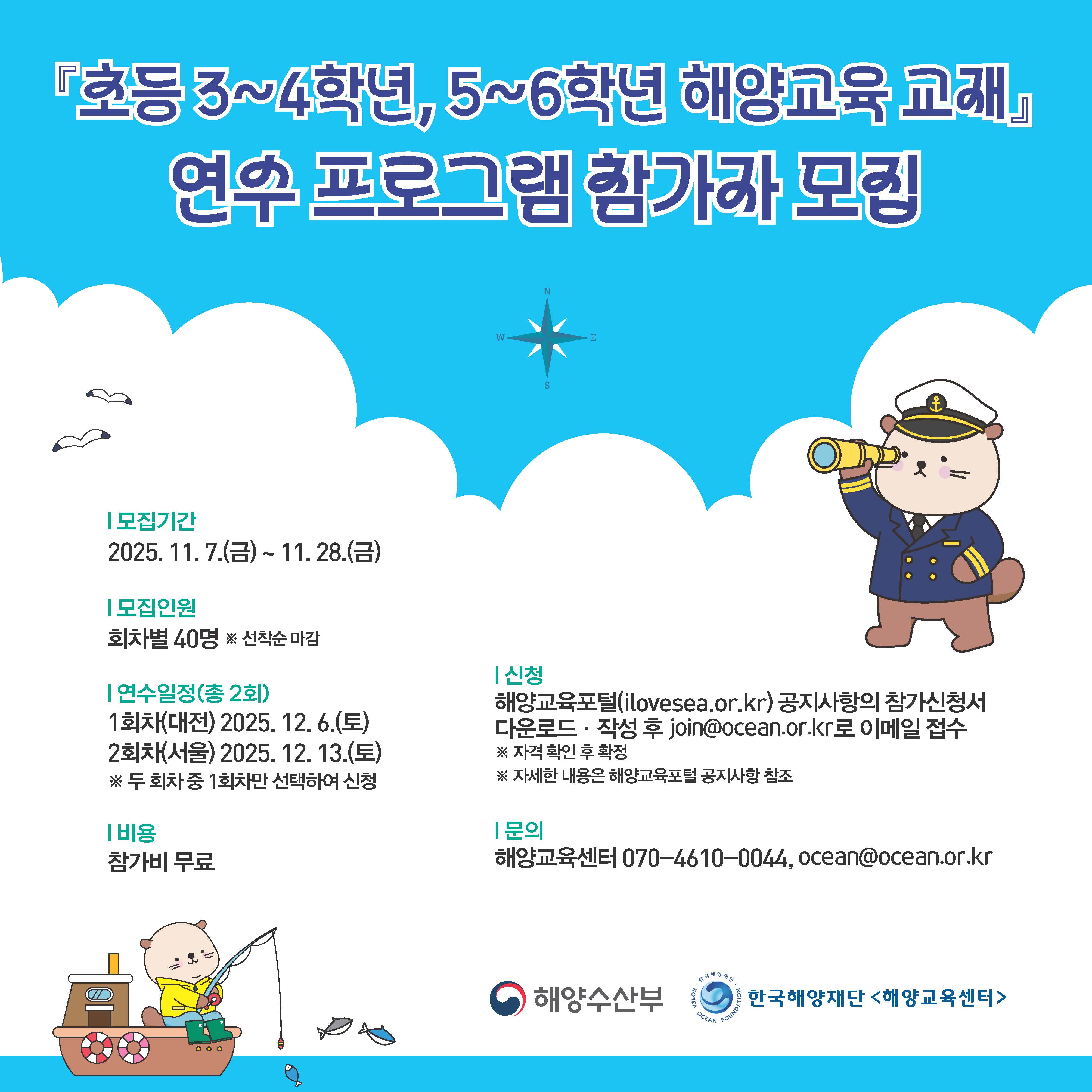 - 2025년 청소년 해양교육 프로그램(가족형 체험학습) 서남해안권 참가자 선정 결과 공고 2025.10.30.