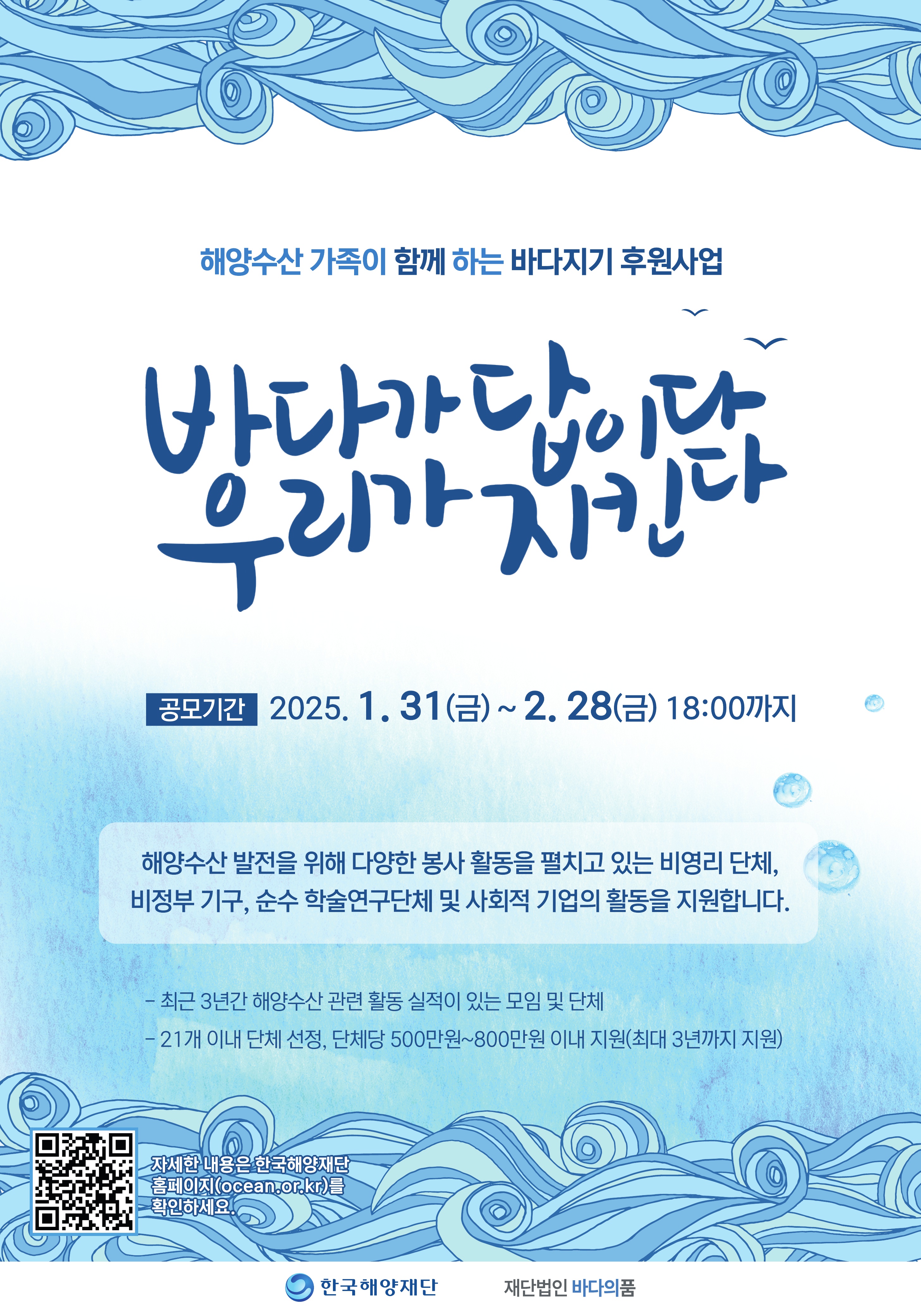2025년 해양수산 가족이 함께하는 바다지기 후원사업 공고