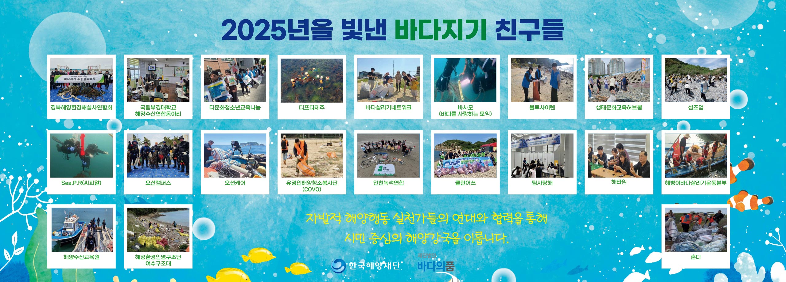해양수산 발전을 위해 다양한 봉사 활동을 펼치고 있는 비영리 단체와 비정부 기구, 순수 학술연구단체 및 사회적 기업 등